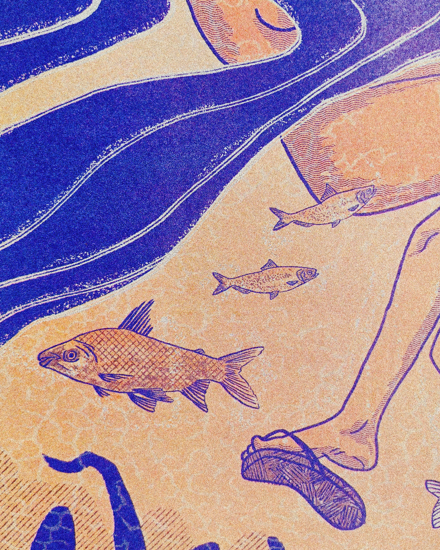 Affiche imprimée en risographie à 3 couleurs. L’illustration à été réalisée pour l’exposition « El camino del río Magdalena » organisée par Ibanasca et Bogotart en Colombie.