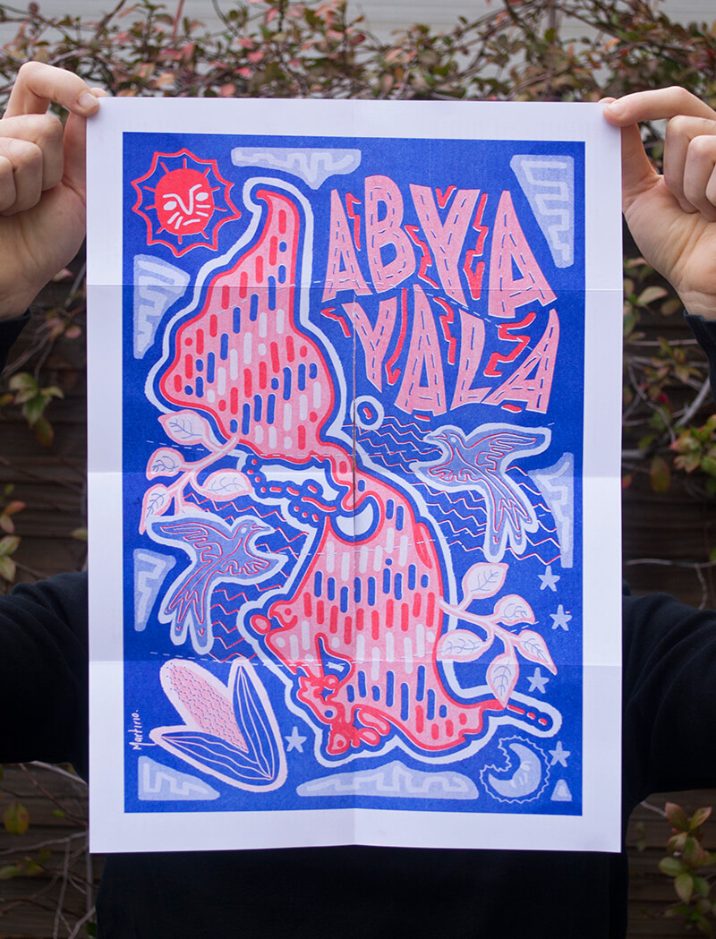 Cette fanzine a été réalisé dans le cadre d’une recherche sur les Cunas ou Gunadule, un des peuples autochtones du continent américain à l’origine du nom Abya Yala, terme qui a été adopté par les peuples natifs d’Amérique depuis 2004, en tant qu’auto-désignation, en opposition au nom imposé et étranger “Amérique” et au concept de “Nouveau Monde”. Contient des Illustrations originales inspirés des motifs cunas et des textes sur leur cosmogonie.