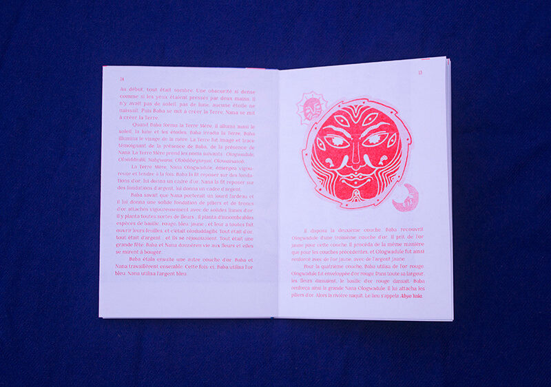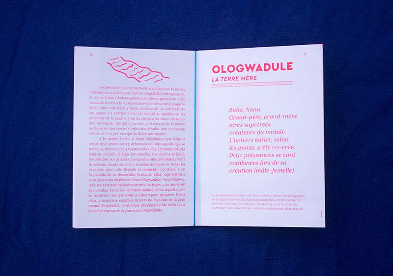 Édition imprimée en risographie de 24 pages et affiche centrale dépliable. Bilingue (espagnol-français). Deux couleurs, rouge et bleu électrique.