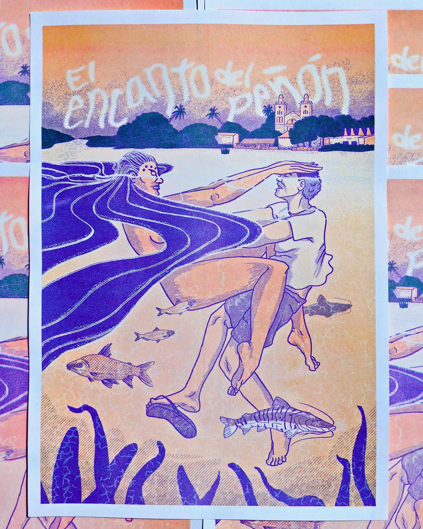 Affiche imprimée en risographie à 3 couleurs. L’illustration à été réalisée pour l’exposition « El camino del río Magdalena » organisée par Ibanasca et Bogotart en Colombie.
